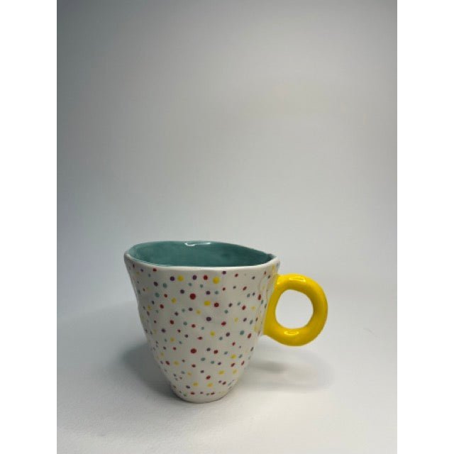 Ceramic Mug - Colourful Dots With Yellow Grip