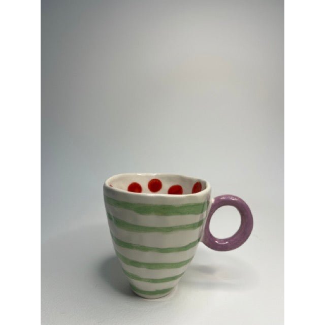Ceramic Mug - Green Stripes With Purple Grip