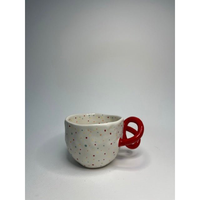 Ceramic Mug - Colourful Dots With Red Grip